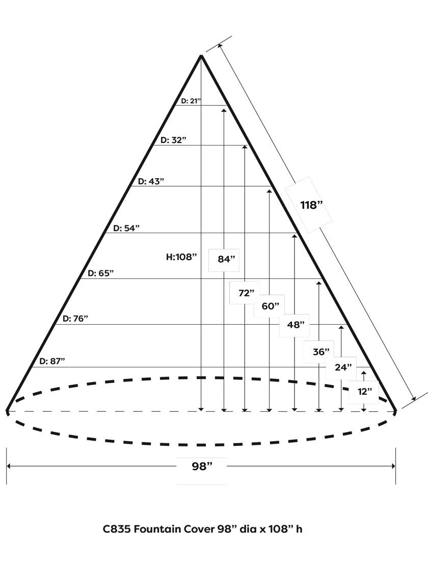 Shaped like a cone to cover and protect Garden Sculptures, Fountains, and Statues from frost and dirt. These covers are made of woven polyester fabric from dyed thread, instead of the more commonly used coated thread, to keep your cover fade resistant. Now treated with an environmentally friendly non-PVC coating on the underside of the cover to keep the fabric weatherproof and water-resistant. Seam construction has also been improved with higher quality thread and tighter stitching density; upper seams are double sewn with waterproof tape. Treated with BOSTECH™ surface treatment; a unique formula that repels water on the cover surface and also includes a UV inhibitor for long-lasting durability. Has solid brass eyelets and durable tie and cord locks for fastening and keeping the cover secure in windy conditions. Resistant to mold, mildew, and rot. Won’t crack in the winter and resistant to high temperatures in the summer. Bosmere has been making quality outdoor furniture covers since 1979.