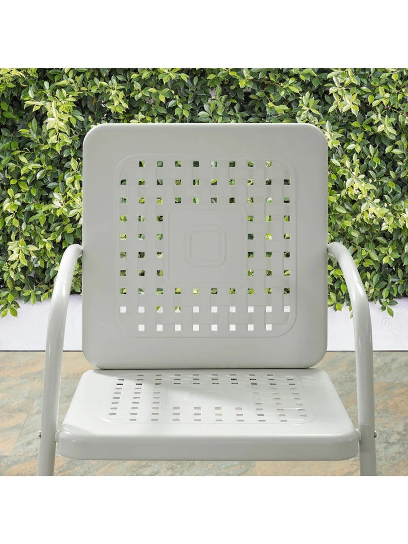 Relax and reminisce in the Bates Chair. The perforated detailing on the back of this metal chair allows for cooling, and its vibrant color offers a vintage feel that isn’t overpowering. Constructed with strong steel and finished with a weather-resistant powder coating, this nostalgic piece is sure to withstand time.