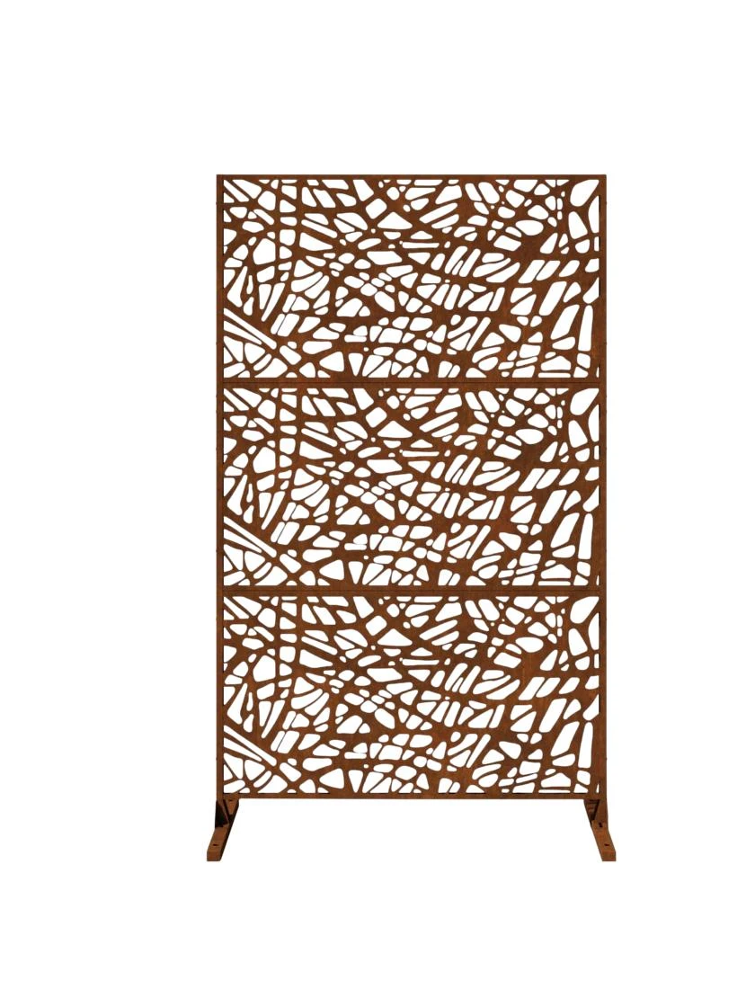 Privacy has never looked so good! Transform your backyard or deck with an outdoor three-panel privacy screen set. These screens are modern, yet versatile. Use a set to hide an unsightly view, to block unwanted direct sunlight, create privacy or to frame an outdoor room. Made from 1-1/2 mm laser cut steel designed to resist corrosion through all seasons.